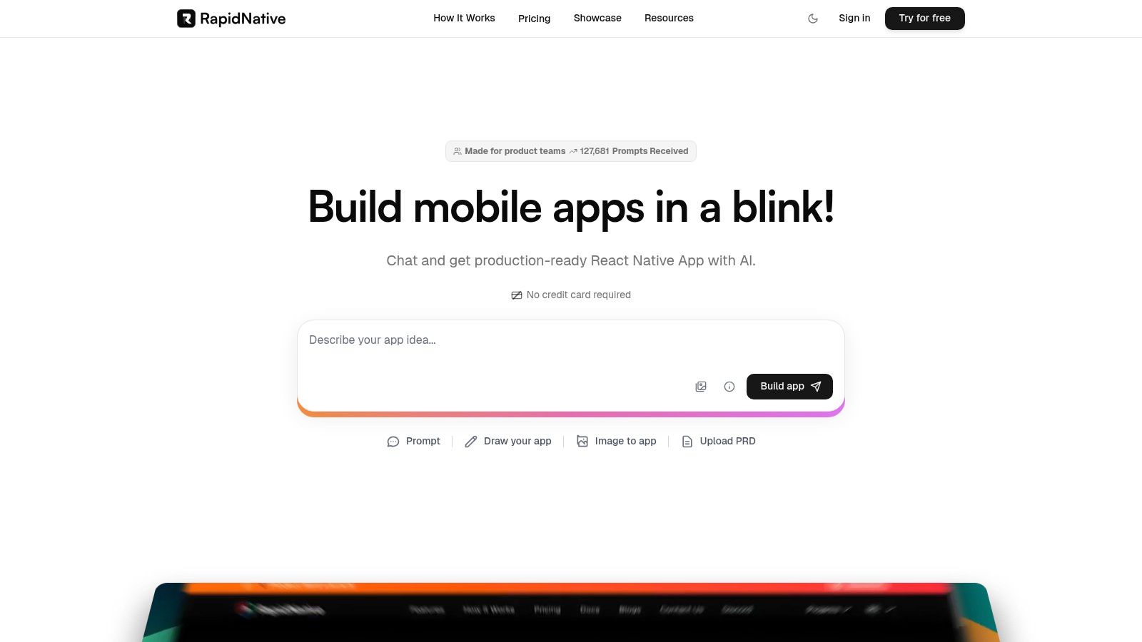 RapidNative is designed for serious product teams who need to bridge the gap between a no-code concept and developer-ready code. It stands out as an app builder without coding by using AI to transform plain-English prompts, hand-drawn sketches, or existing UI images into production-ready React Native source code. This unique approach empowers founders and designers to generate testable, high-fidelity mobile app UIs without writing code, while delivering a clean, extensible codebase that developers can immediately build upon.
