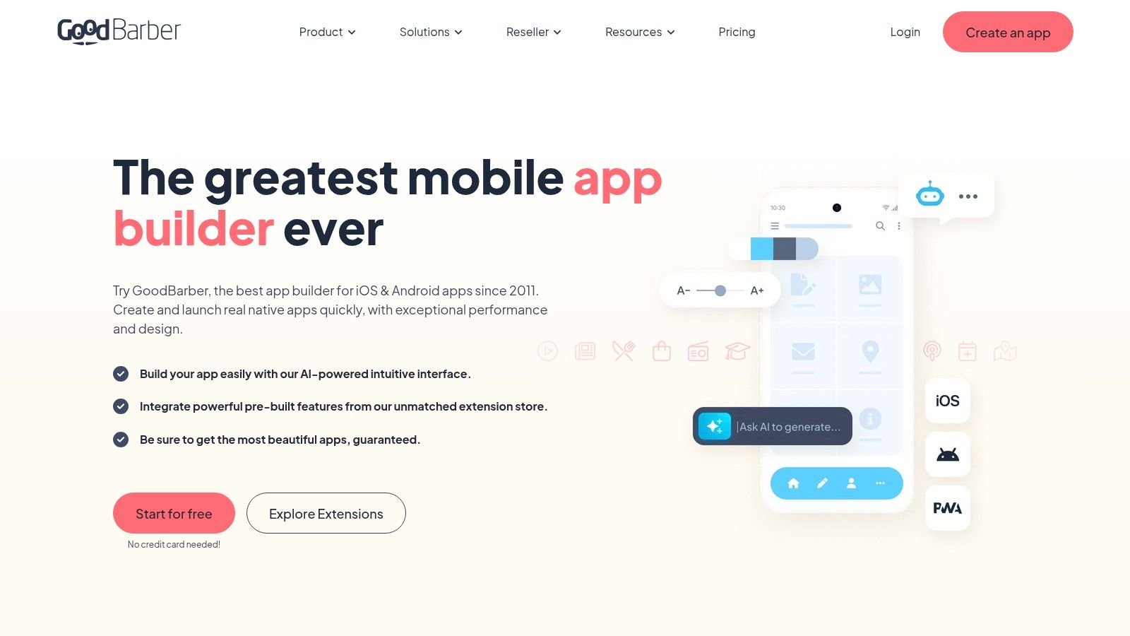 GoodBarber is a reliable app builder without coding that focuses on creating high-performance native iOS and Android apps alongside Progressive Web Apps (PWAs). It is particularly well-suited for content publishers, local businesses, and e-commerce merchants who need a beautiful, stable mobile presence. The platform is built on native technologies like Swift and Kotlin, which means a smoother user experience and better access to device features.