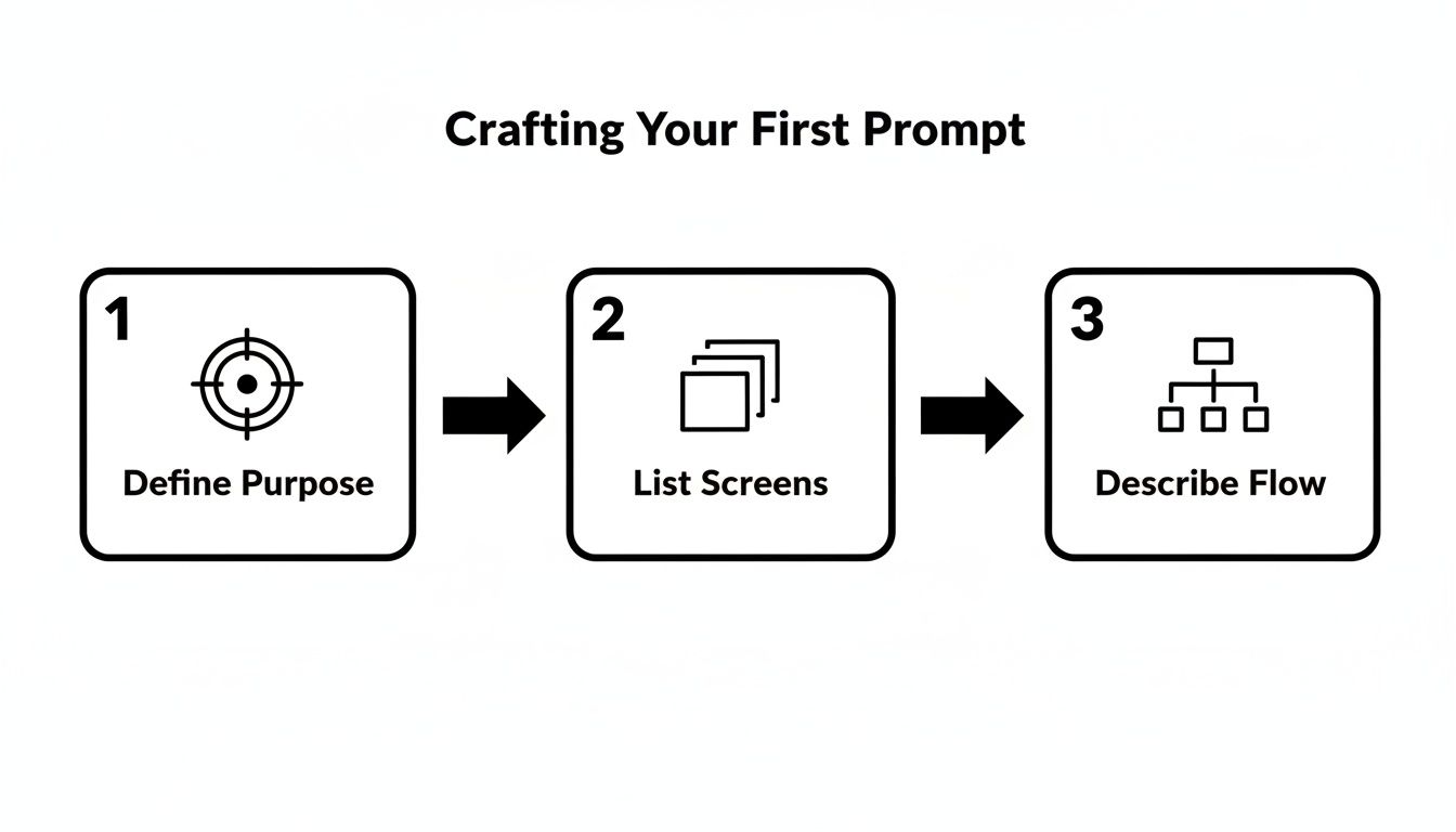 A great prompt doesn't have to be a novel, but it does need structure. You need to clearly lay out what the app is for, what screens it needs, and how a user gets from one screen to the next. This tells the AI not just what to build, but how it all should work together.