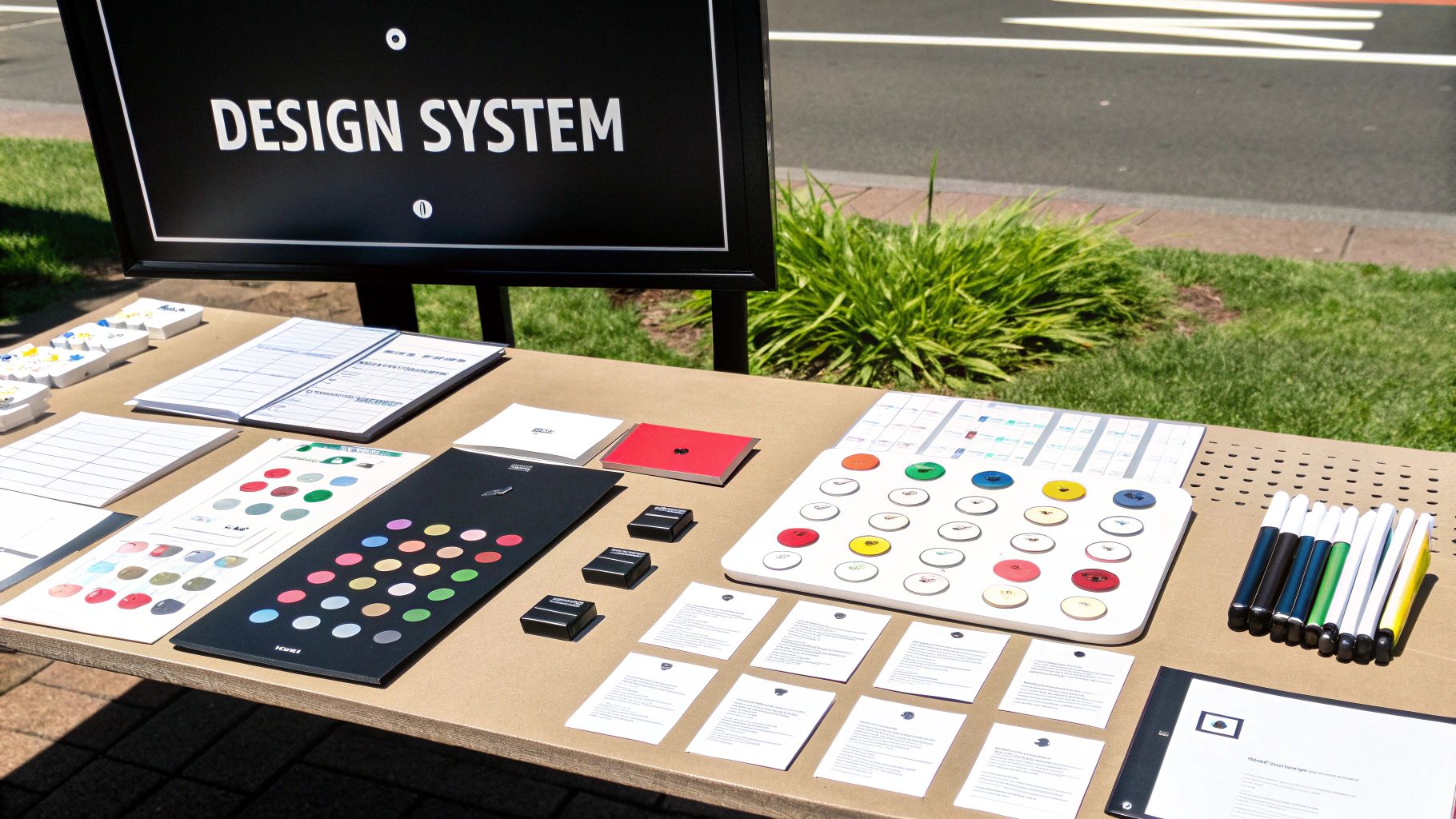 A visual design system is the single source of truth that ensures your brand is applied consistently across all screens and components. It's a collection of reusable components guided by clear standards, encompassing everything from color palettes and typography to iconography and spacing. By establishing these rules upfront, you create a unified experience that reinforces brand recognition.