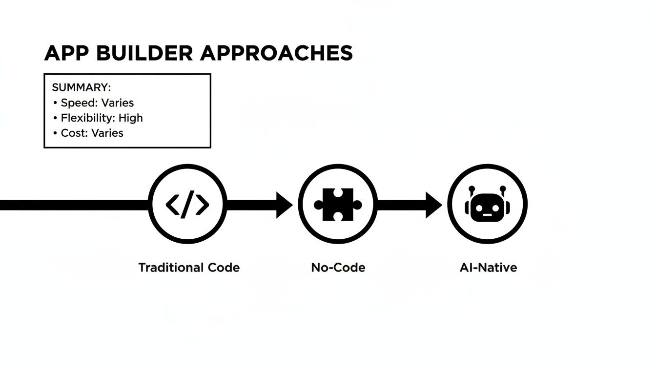 The first real decision you'll make when building an app is how you're going to build it. The landscape has moved far beyond just hiring a team of engineers to code everything from scratch. Today, founders, product managers, and designers have to weigh the pros and cons of three very different ways of working.