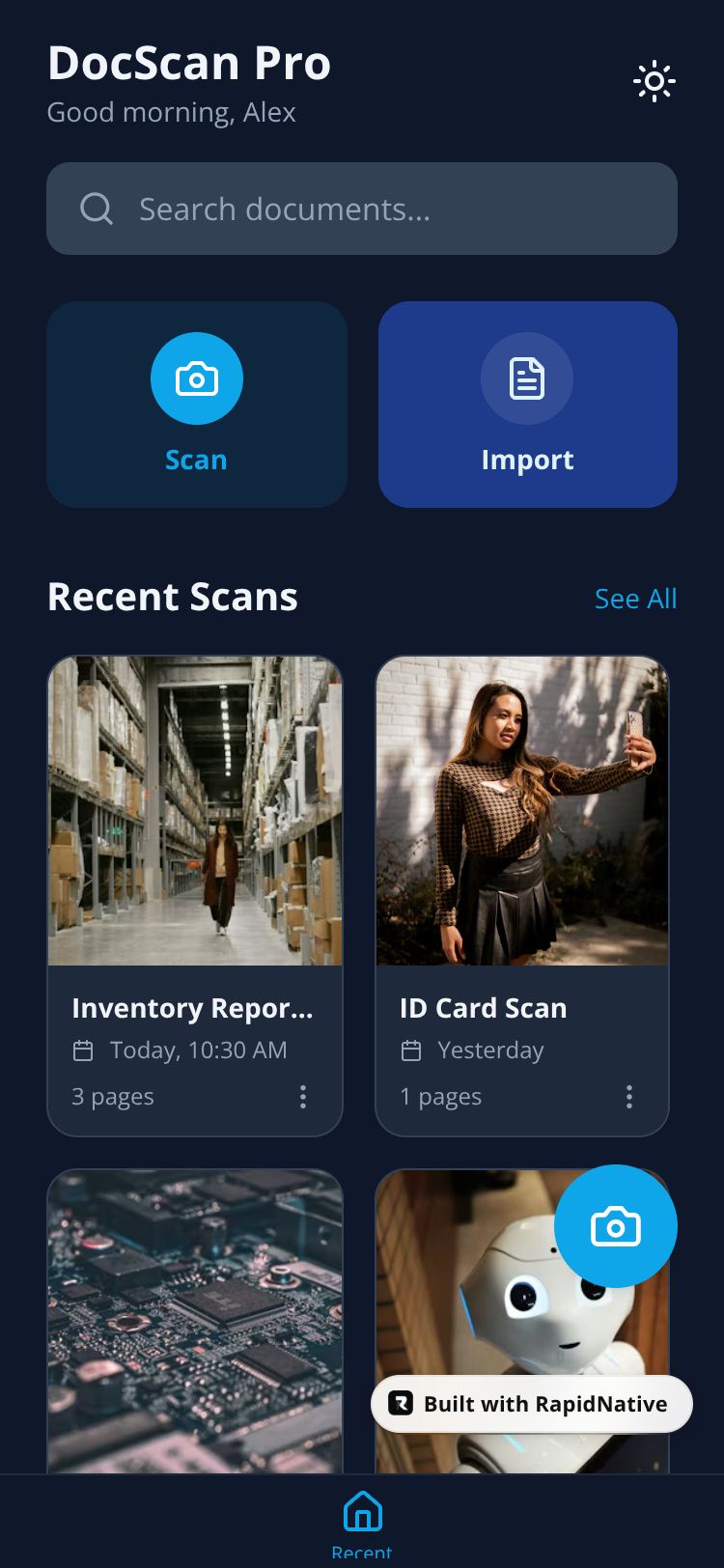 A professional document scanner app with OCR capabilities and PDF generation. Scan, organize, and share your documents effortlessly.