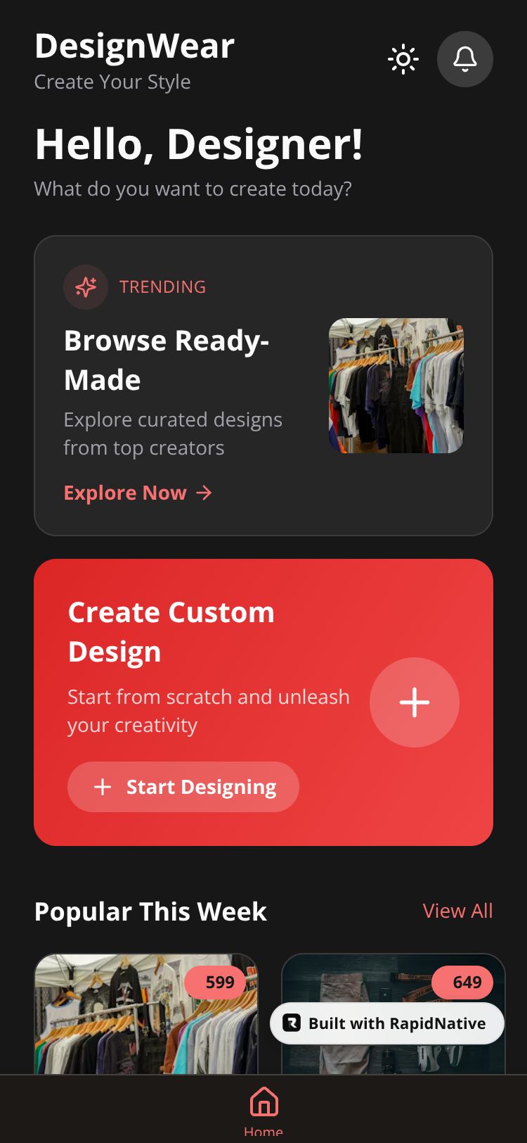 Project Screens for DesignWear App