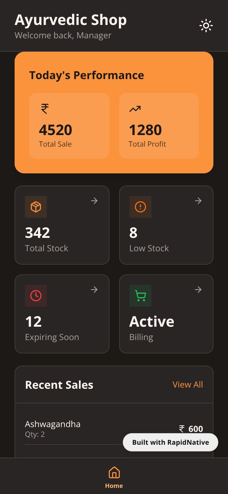 Project Screens for AyurShop Manager App