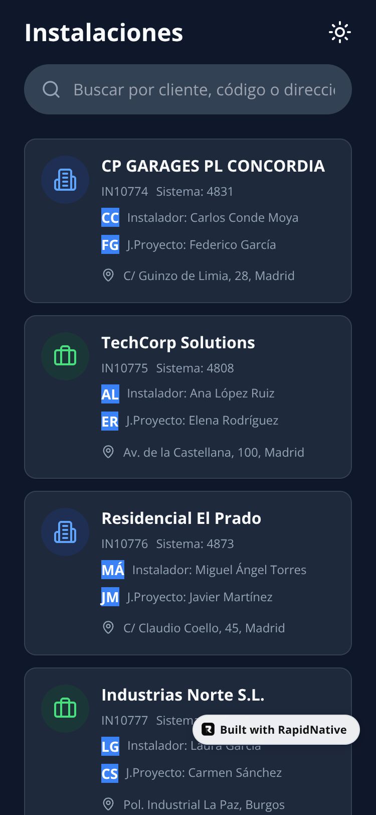 Internal app for security system installers to manage installation projects, view details, and track progress.