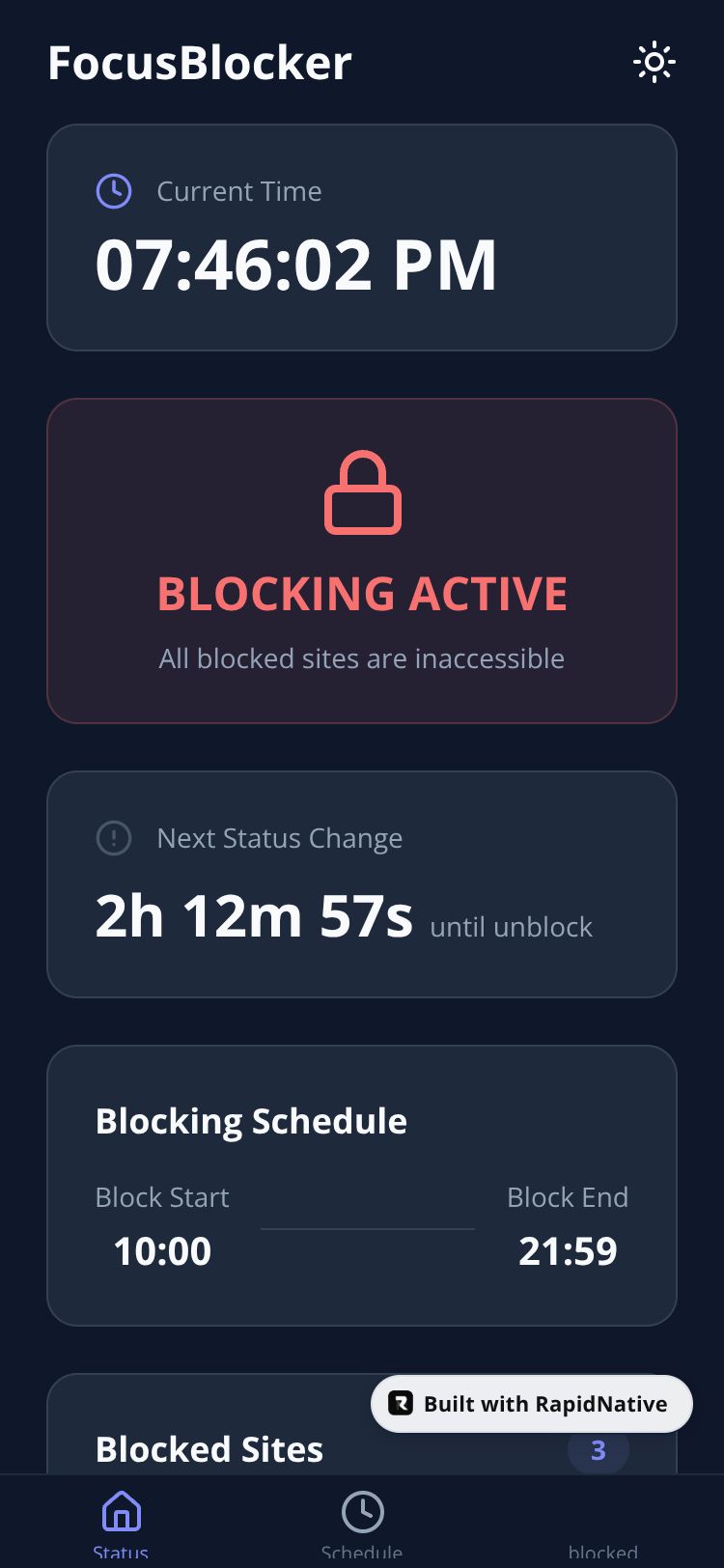 A local-only website blocker app with time-based blocking. Manage blocked sites and configure focus hours to stay productive.