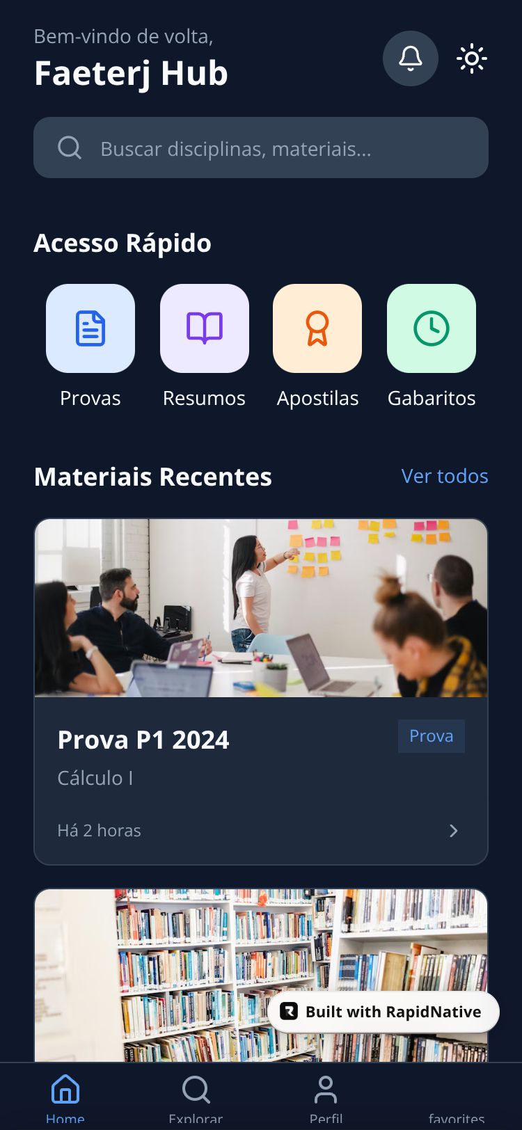 React Native Faeterj Hub App Preview