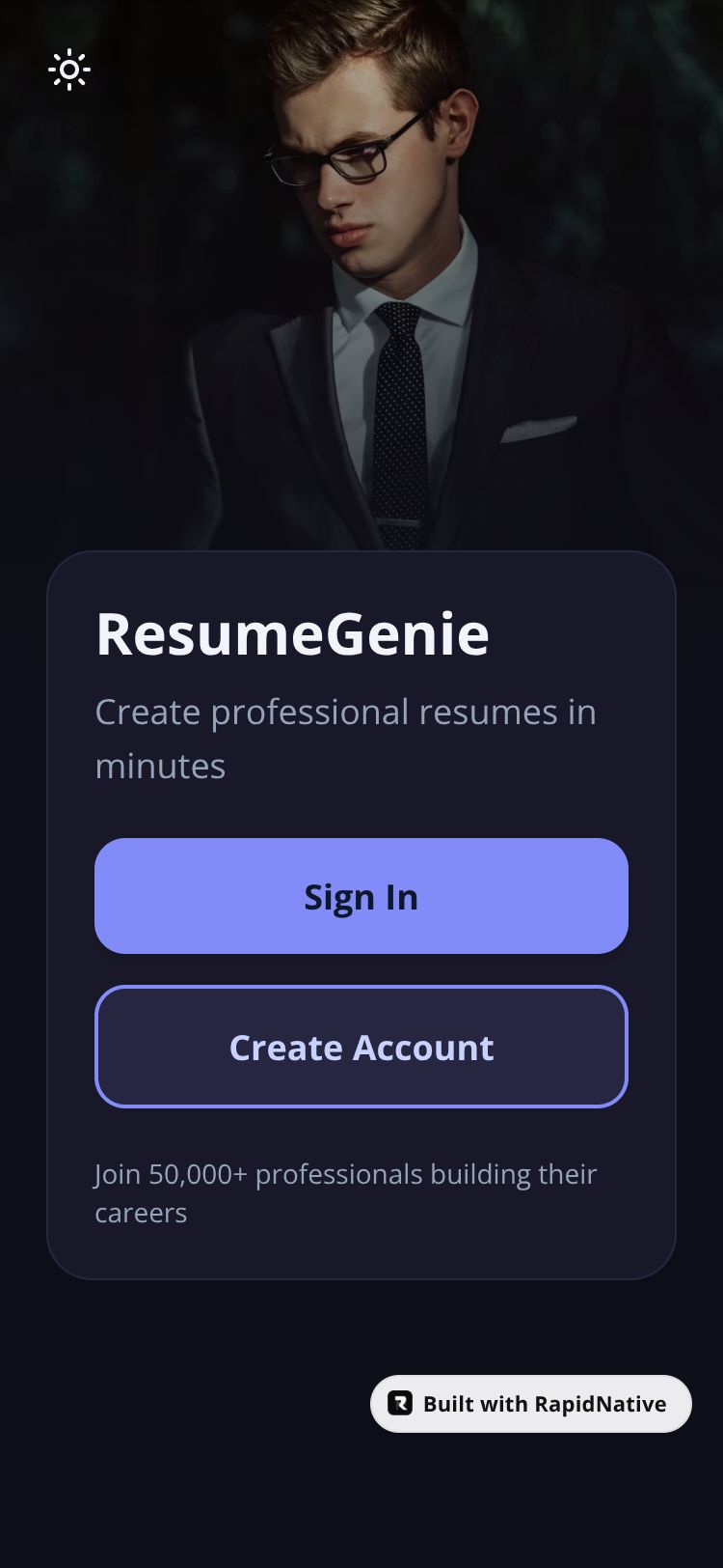 Browse this public project and clone it to start building your own React Native ResumeGenie app.