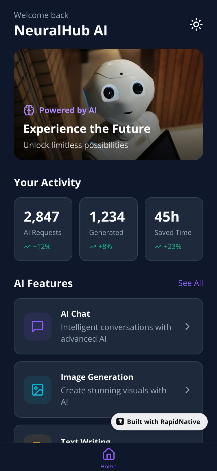 Browse this public project and clone it to start building your own React Native NeuralHub AI app.