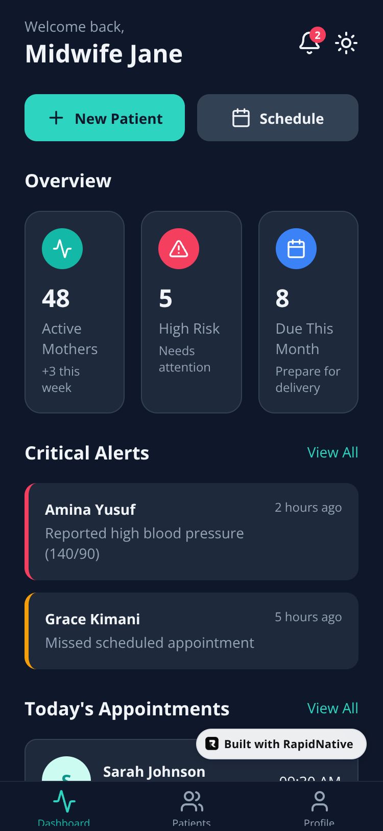 A digital maternal health platform enabling midwives to monitor and follow up with pregnant mothers throughout their continuum of care.