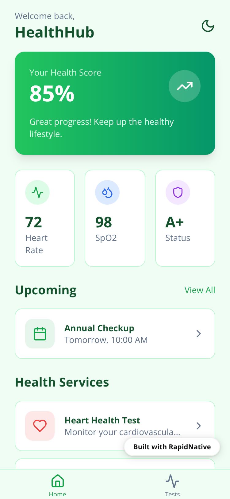 Browse this public project and clone it to start building your own React Native HealthHub Pro app.
