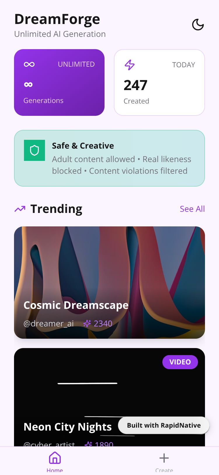 Browse this public project and clone it to start building your own React Native DreamForge AI app.