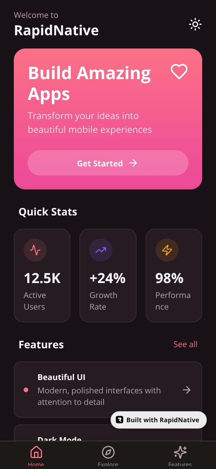 Browse this public project and clone it to start building your own React Native RapidNative Starter app.
