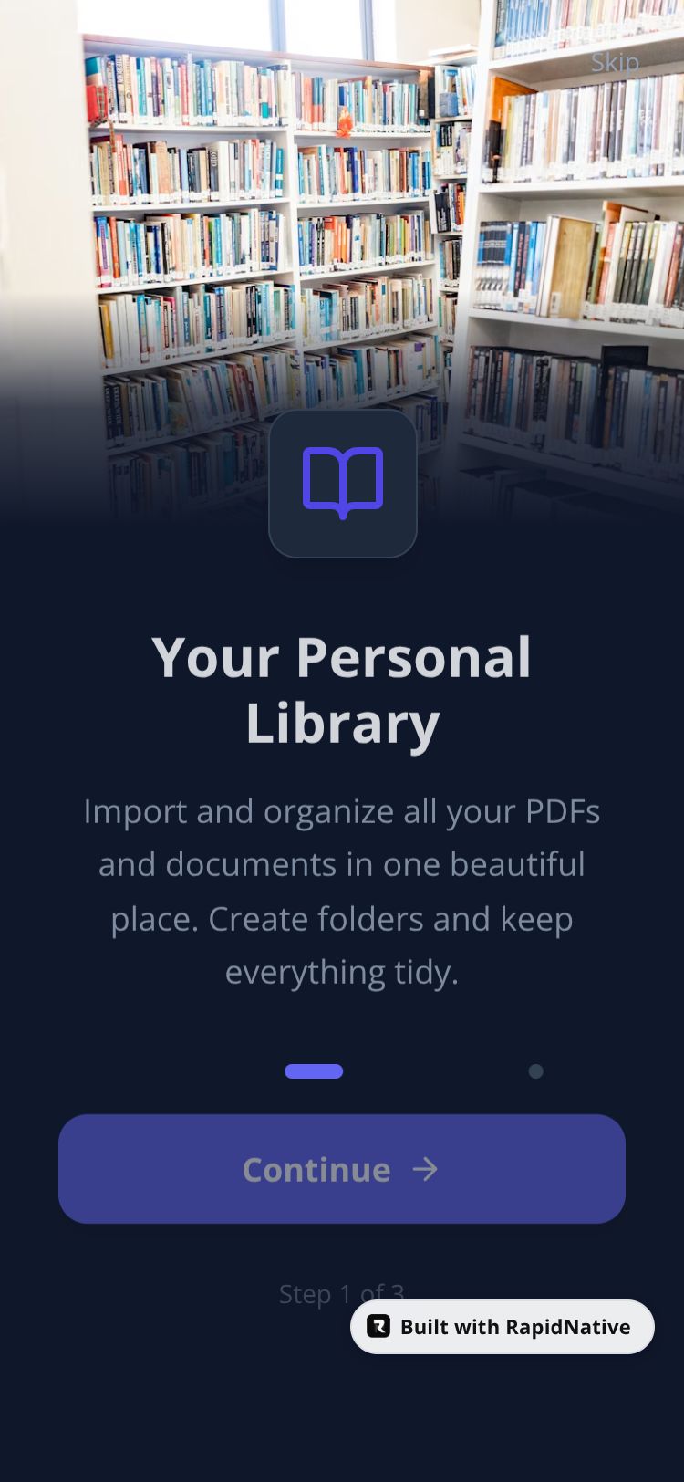 A modern document library app for organizing and reading PDFs offline. Import files, create folders, and enjoy a premium reading experience.