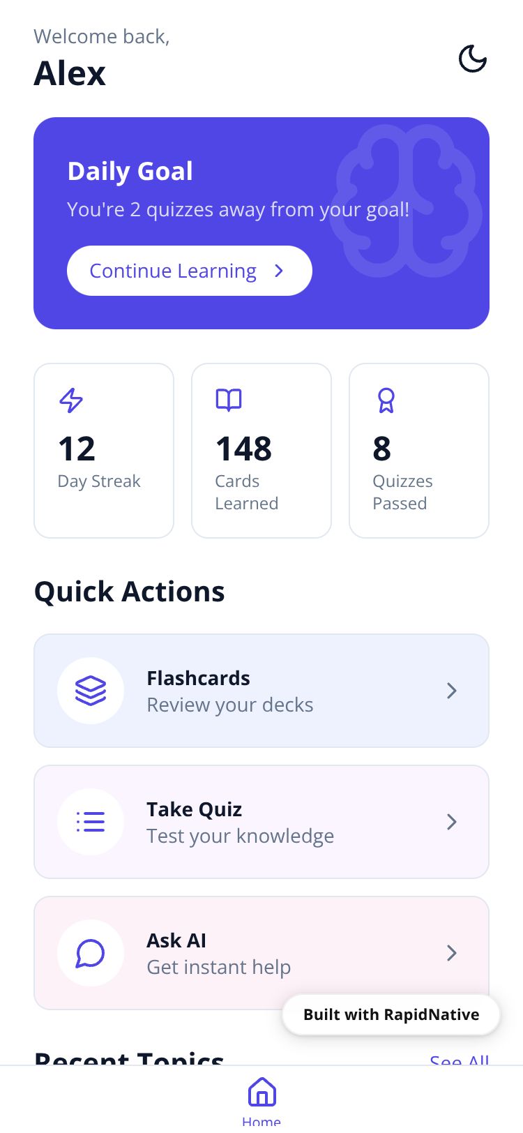 Browse this public project and clone it to start building your own React Native StudyQuest AI app.