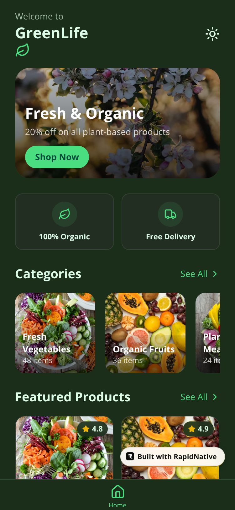 React Native GreenLife Market App Preview