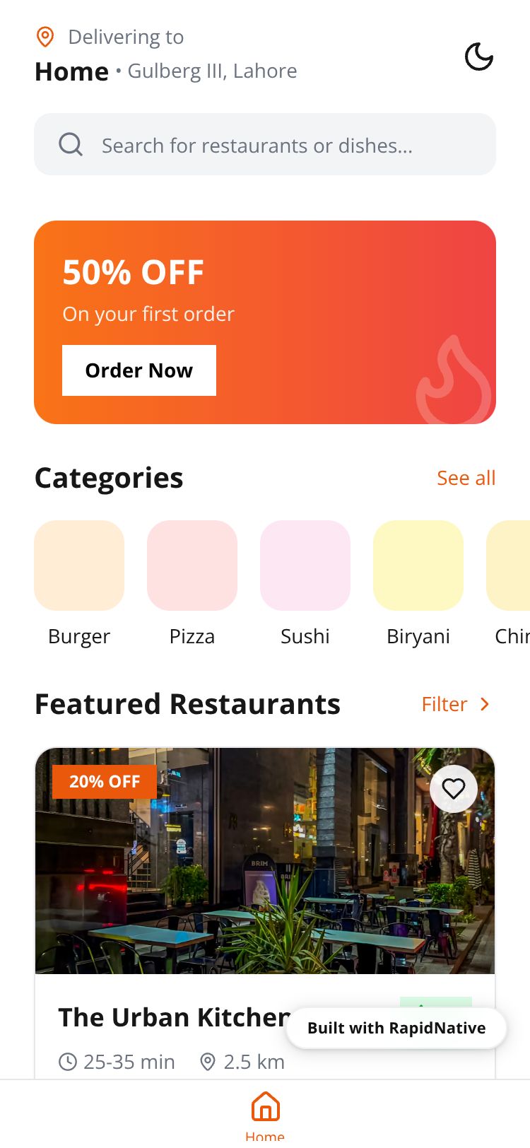 Browse this public project and clone it to start building your own React Native QuickBite Delivery app.