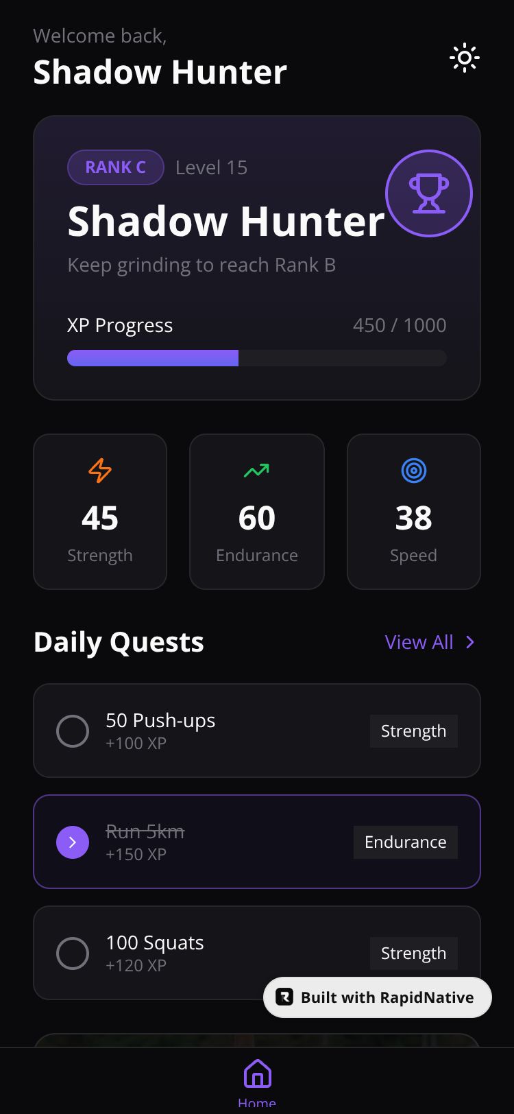 Browse this public project and clone it to start building your own React Native Solo Leveling Fitness app.