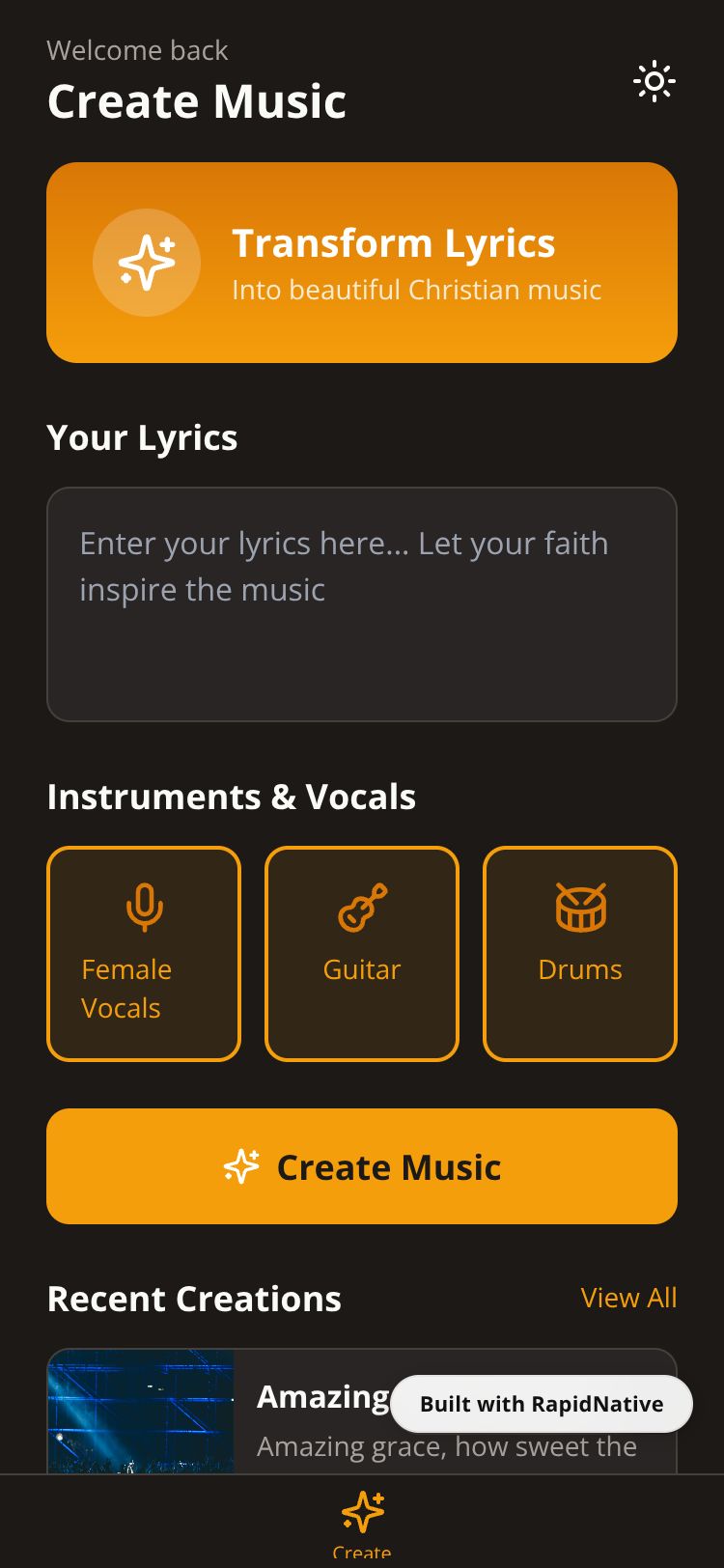 Browse this public project and clone it to start building your own React Native FaithLyrics Music Creator app.