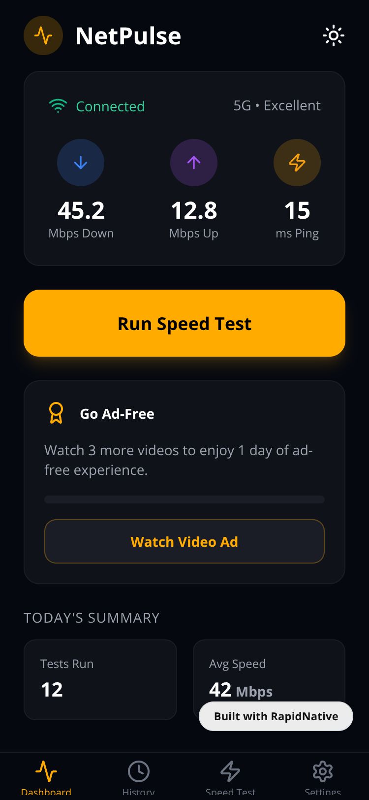 React Native NetPulse App Preview