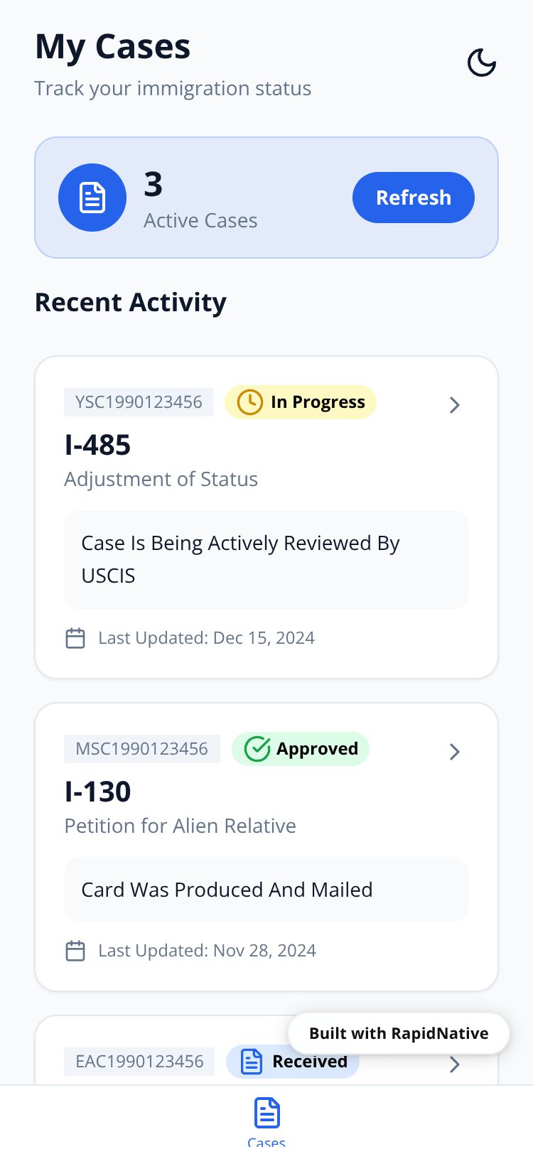 Track your USCIS and NVC immigration cases in real-time. Get instant status updates, case history, and notifications for your visa applications.