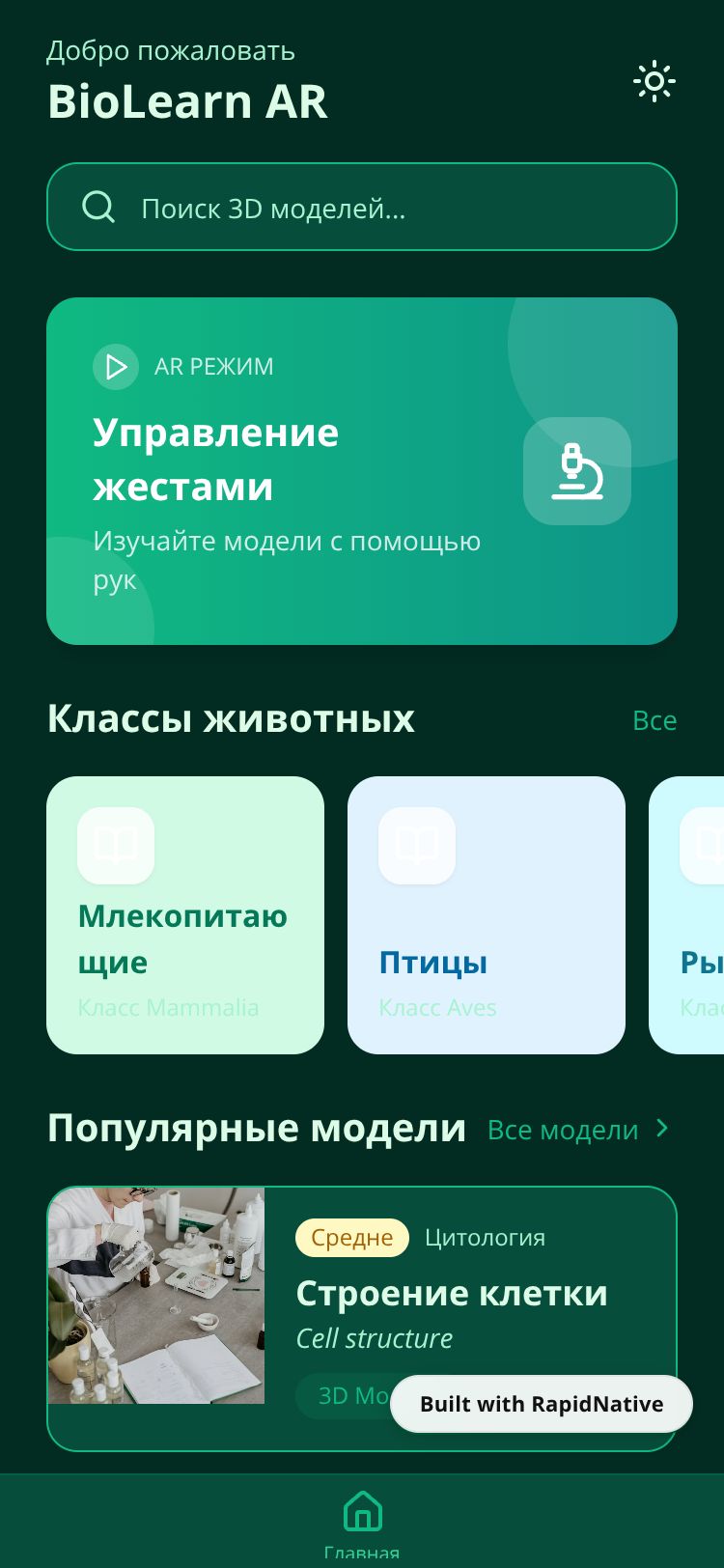 Интерактивная образовательная платформа по биологии с 3D моделями организмов, классификацией по таксономическим группам и AR визуализацией. Изучайте строение живых организмов через современные технологии.