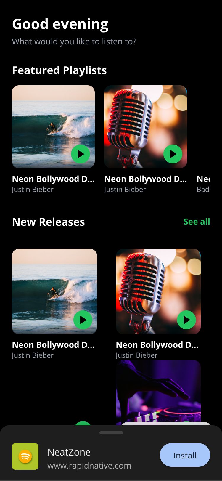 Browse this public project and clone it to start building your own React Native NeatZone app.