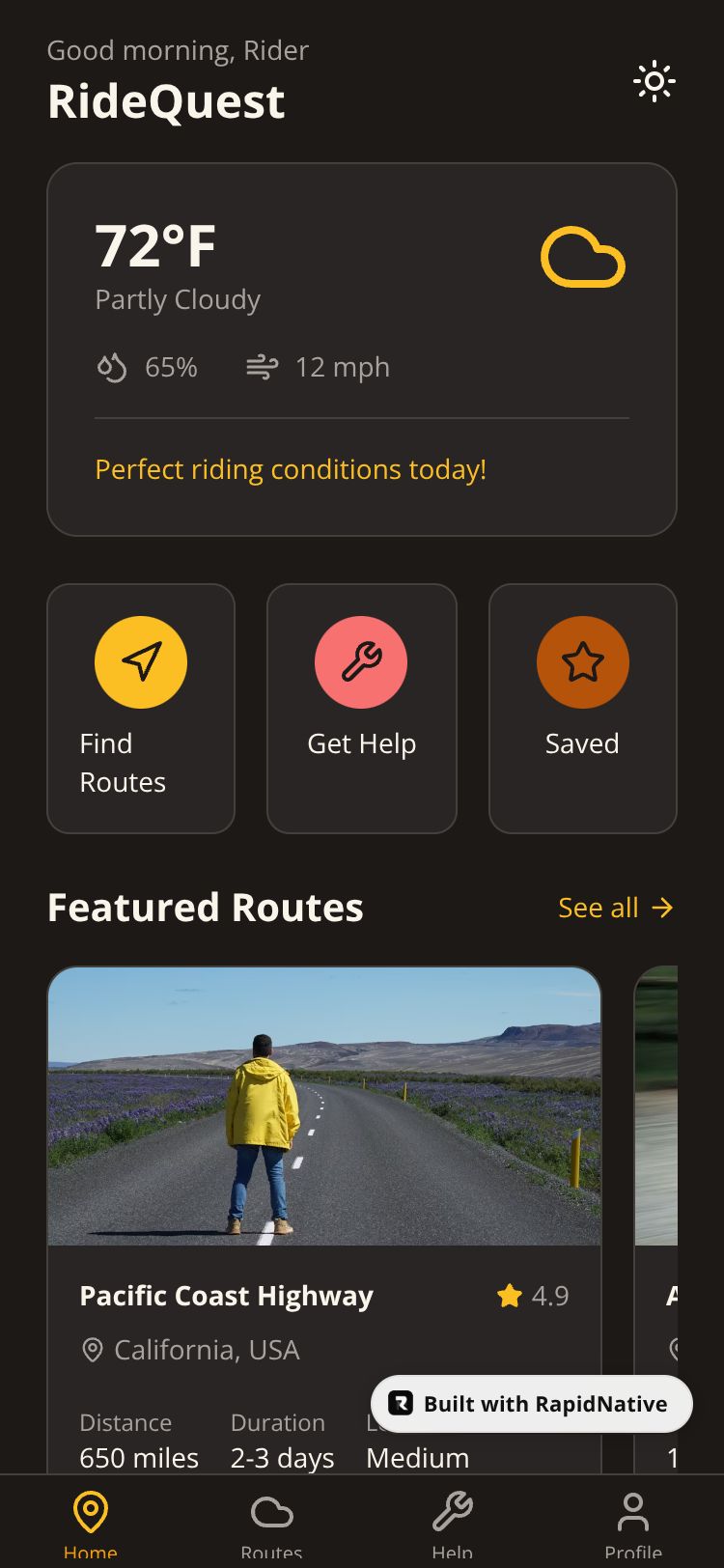 The ultimate companion for bikers with weather forecasts, famous routes, and roadside assistance.
