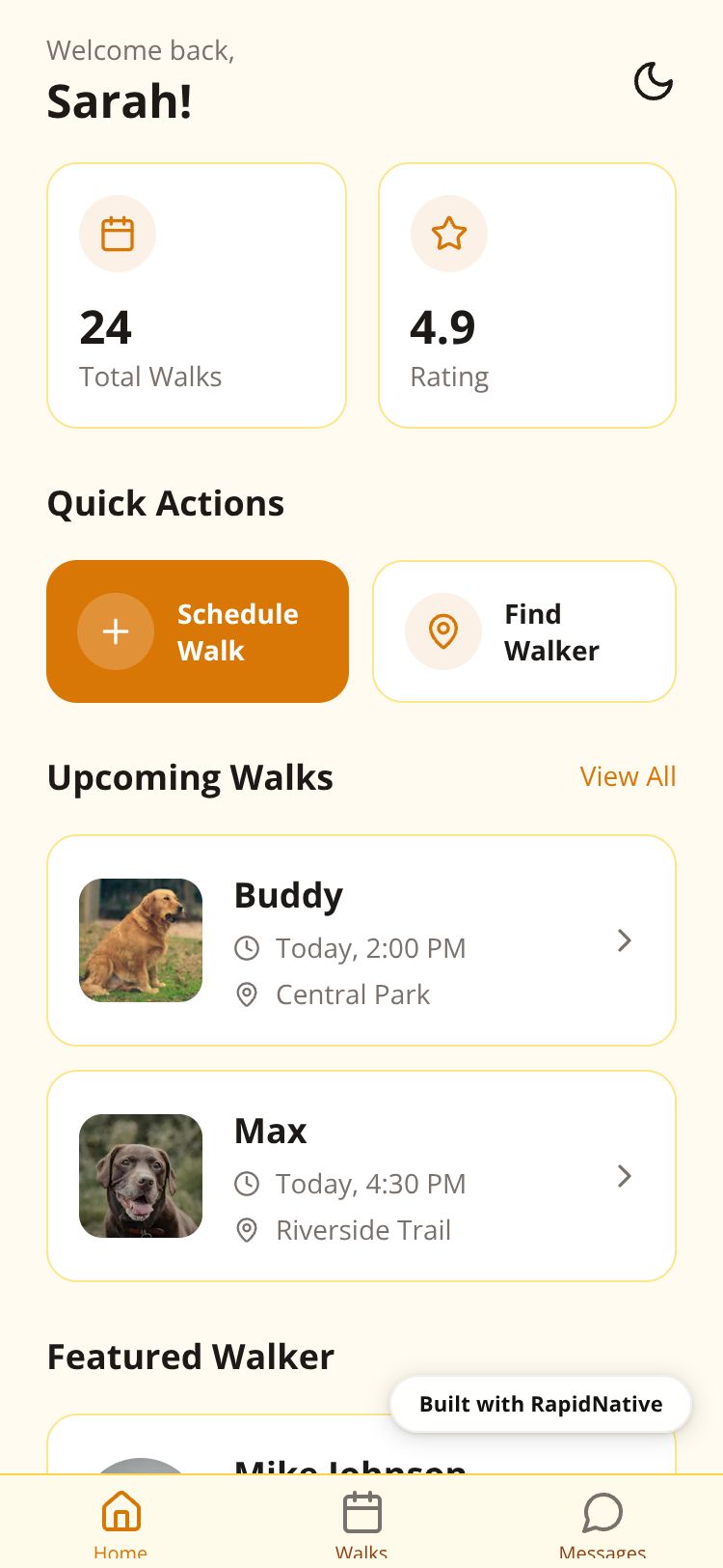Browse this public project and clone it to start building your own React Native PawWalk Pro app.