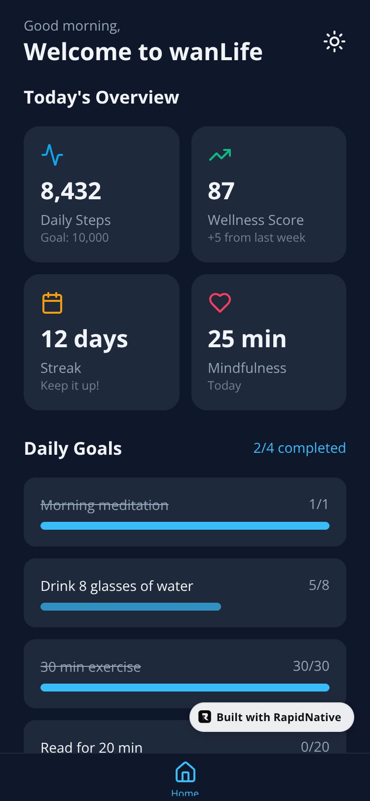 A holistic lifestyle app for tracking wellness goals, daily activities, and personal growth in one unified experience.