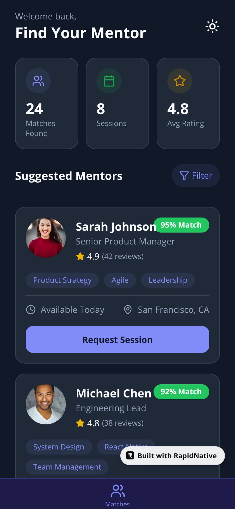 Browse this public project and clone it to start building your own React Native MentorMatch Pro app.