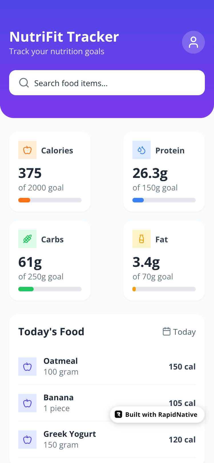 Browse this public project and clone it to start building your own React Native NutriFit Tracker Copy app.