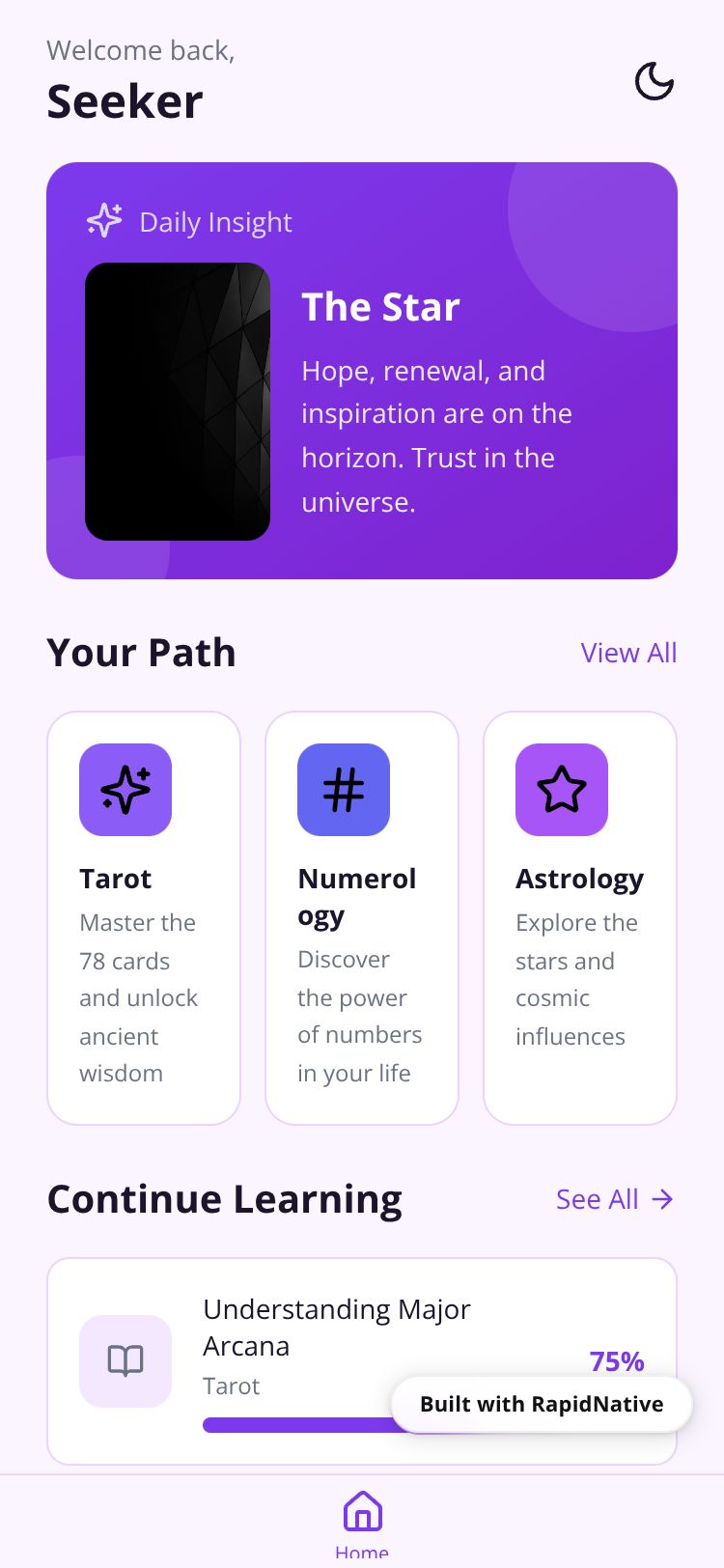 Browse this public project and clone it to start building your own React Native MysticWisdom app.