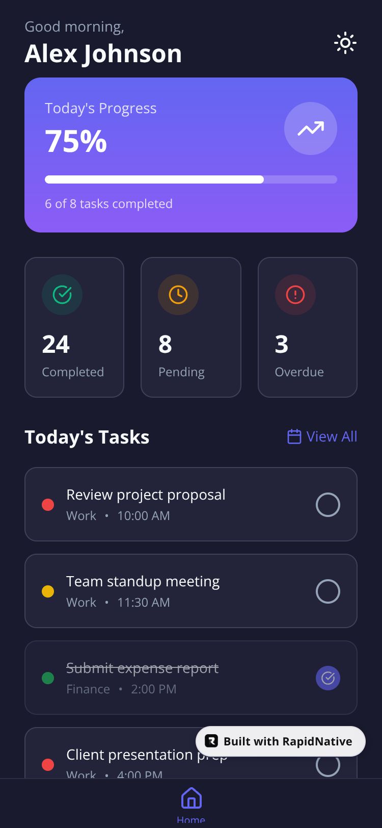 Browse this public project and clone it to start building your own React Native TaskMaster Pro app.