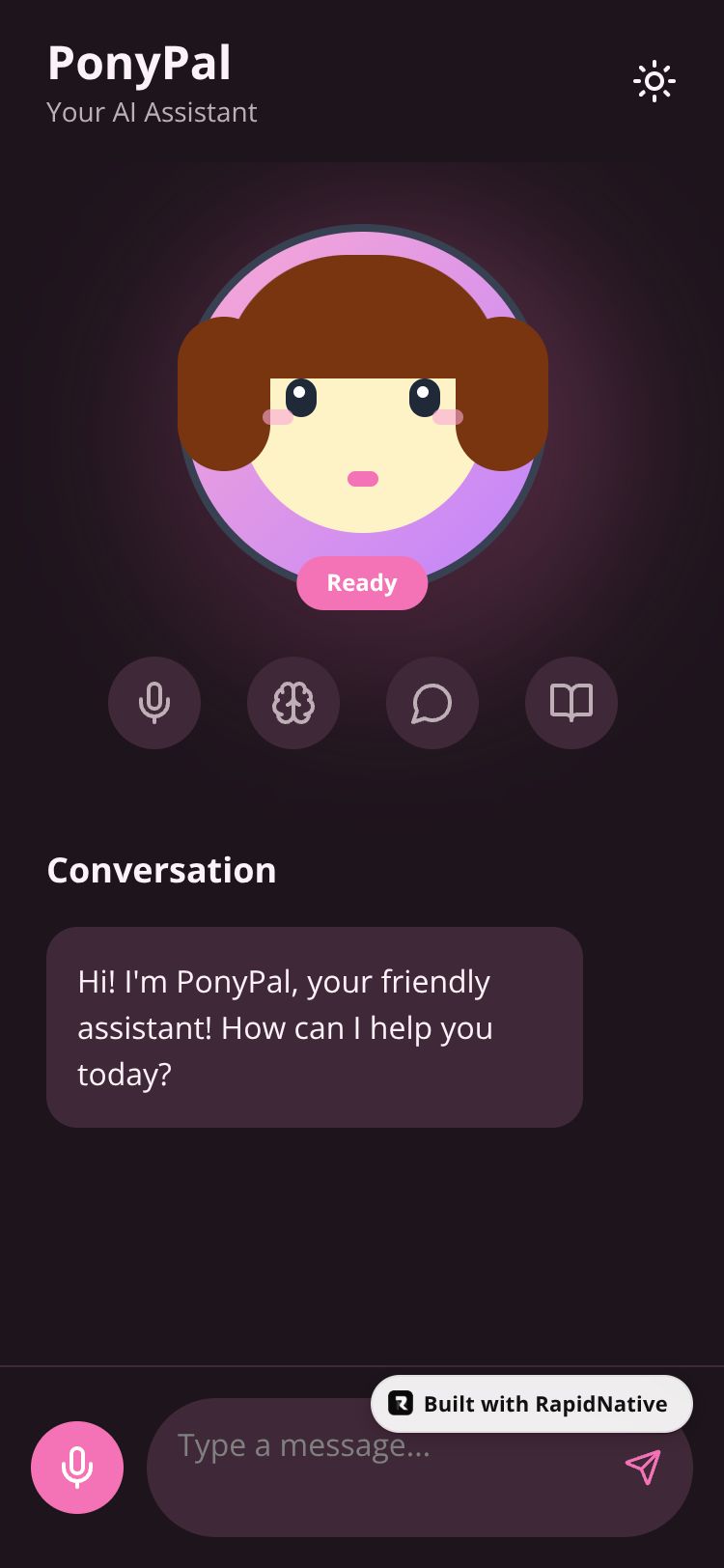 Browse this public project and clone it to start building your own React Native PonyPal AI Assistant app.