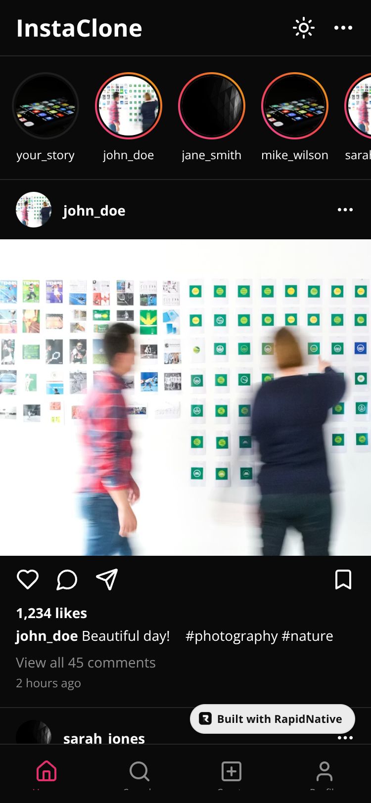Browse this public project and clone it to start building your own React Native InstaClone app.
