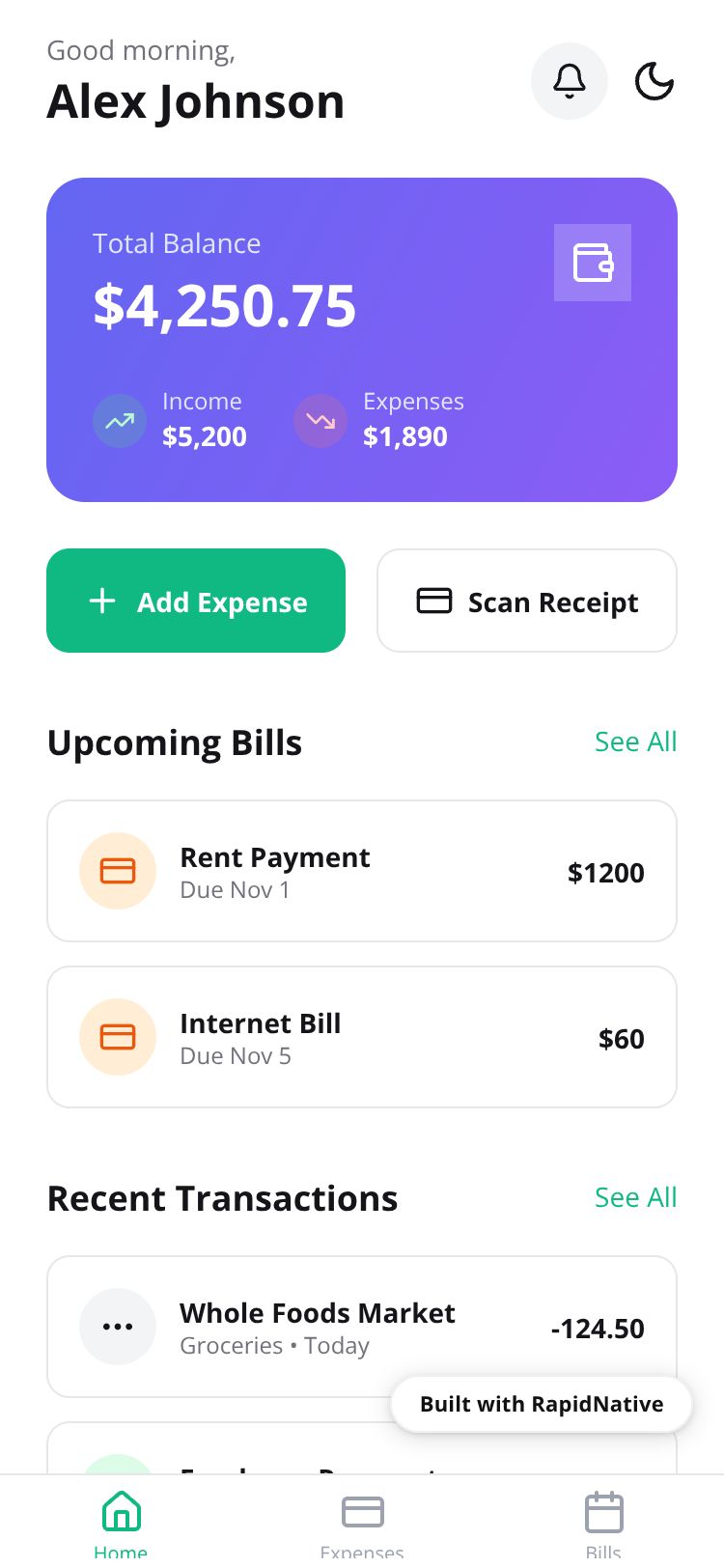 React Native SpendWise App Preview