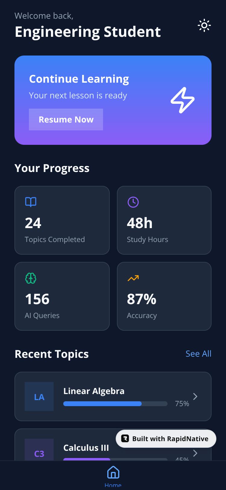 Browse this public project and clone it to start building your own React Native EngMath AI app.