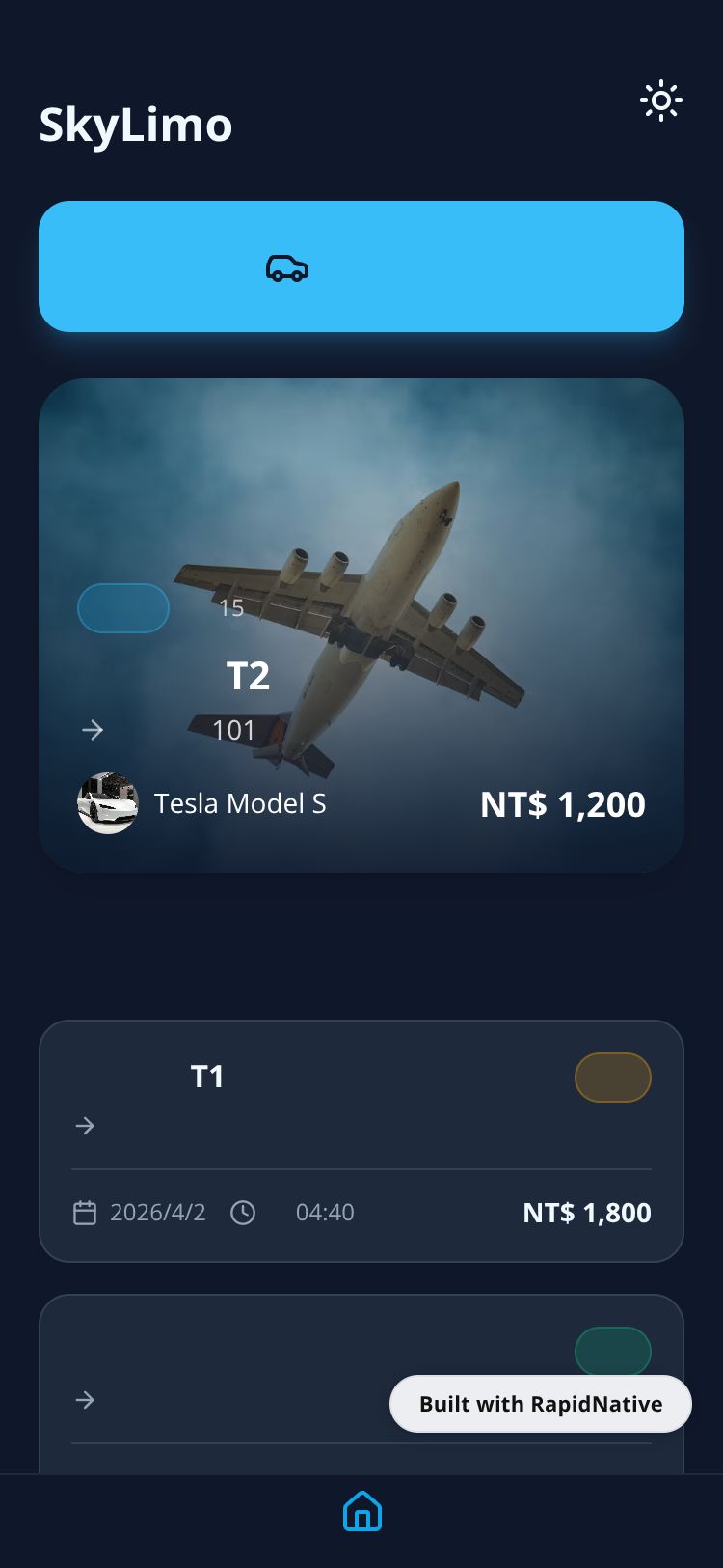 Browse this public project and clone it to start building your own React Native SkyLimo 機場接送 app.
