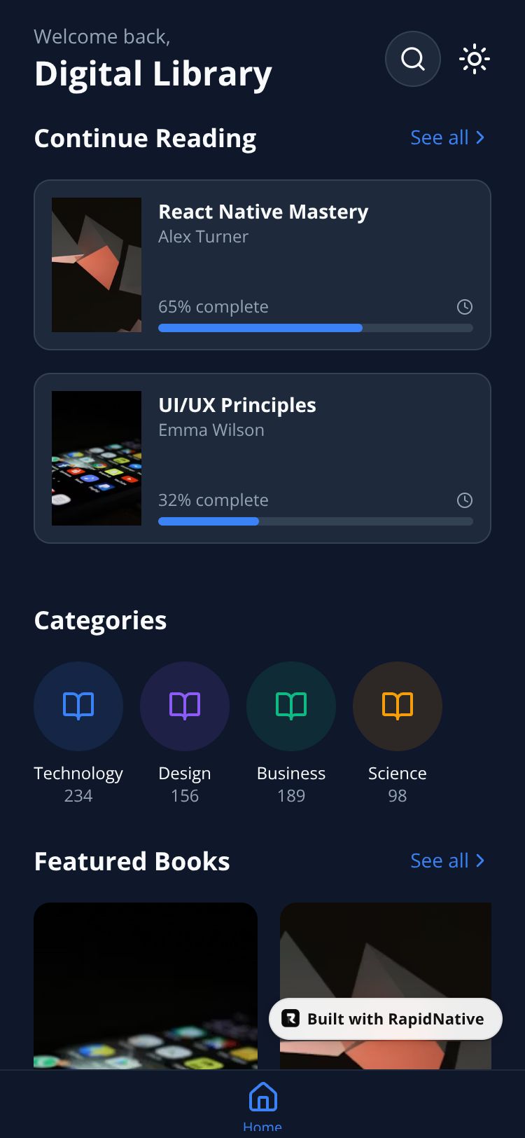 Browse this public project and clone it to start building your own React Native DigitalLibrary app.