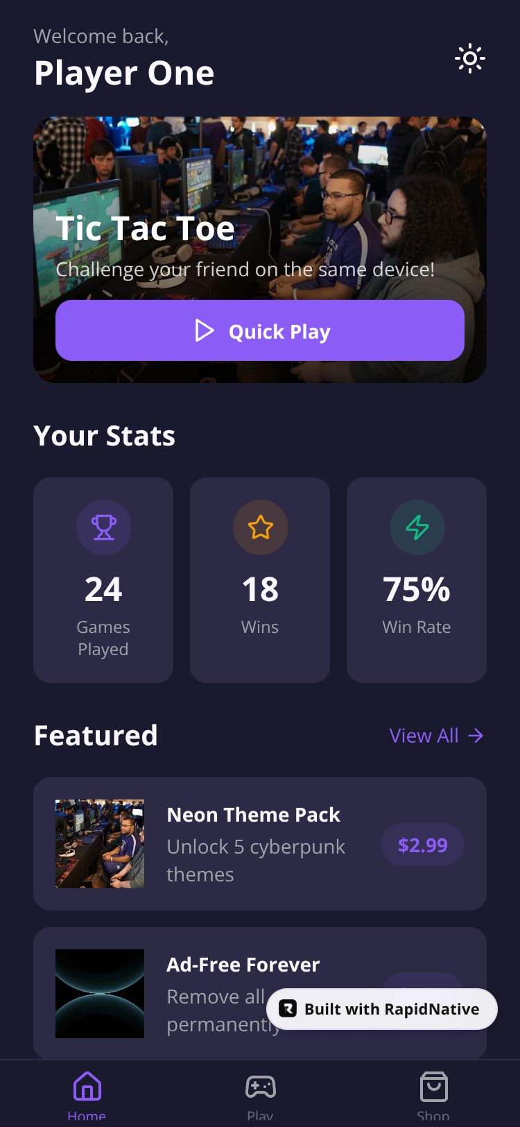 A fun 2-player local multiplayer game with Tic Tac Toe, premium themes, and IAP features. Challenge friends on the same device!