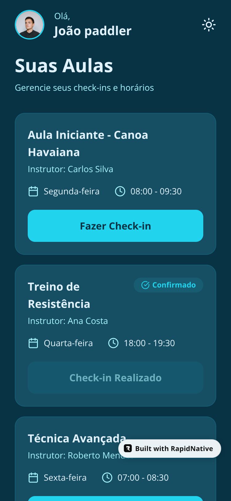 Aplicativo de check-in para aulas de Canoa Hawaiana. Gerencie suas aulas, confira horários e realize check-in com facilidade.