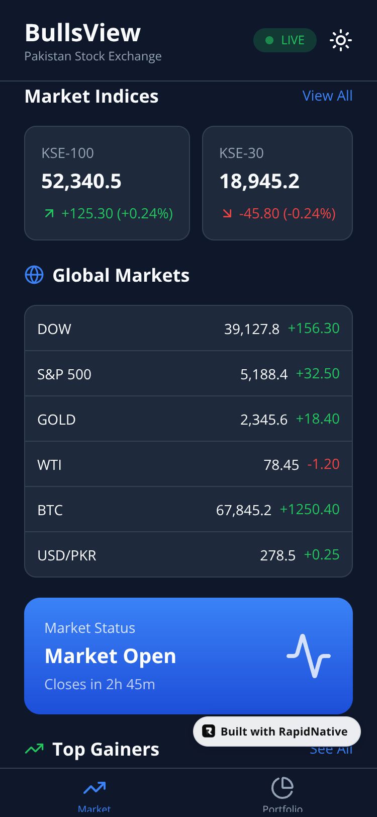 Pakistan Stock Exchange market intelligence app with real-time data, research tools, portfolio tracking, and sector analysis for informed investment decisions.