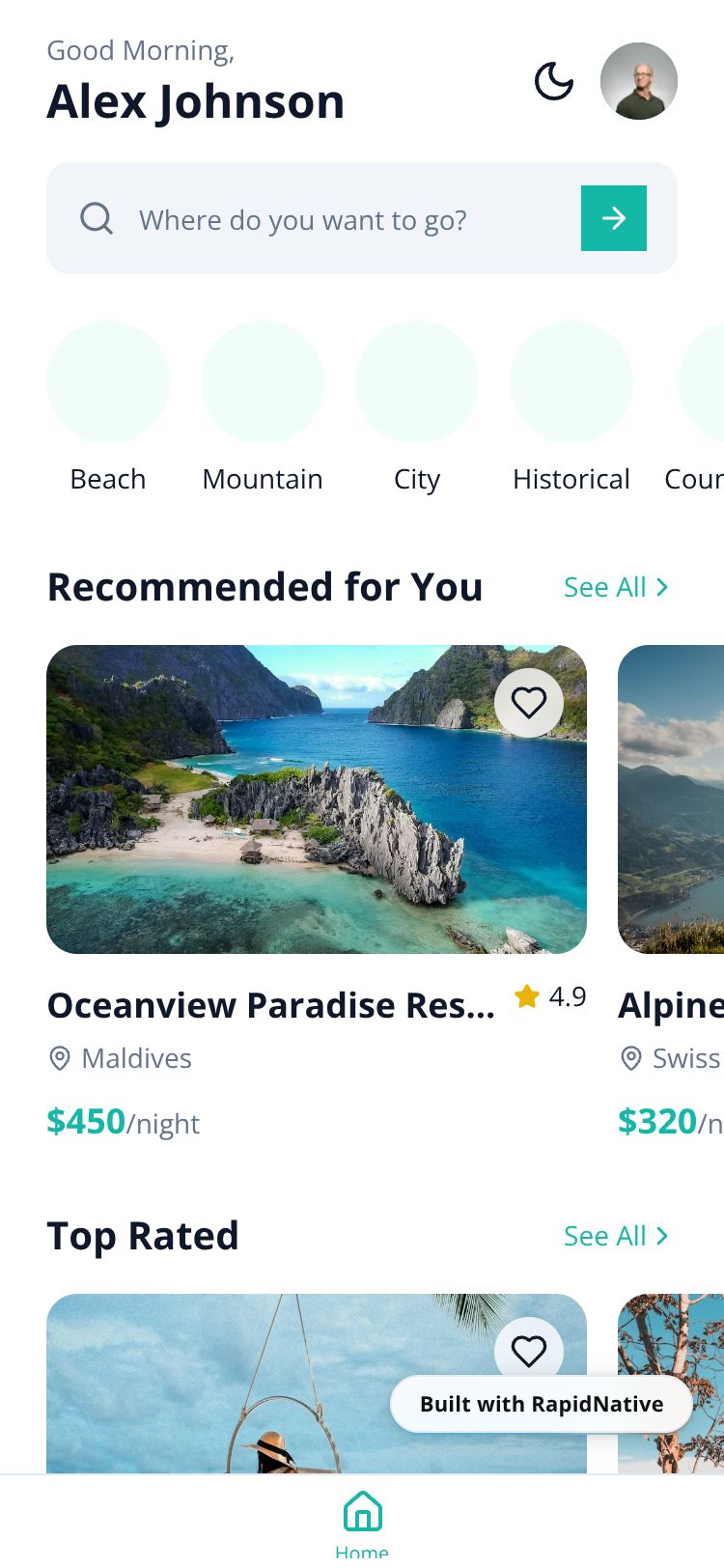 Browse this public project and clone it to start building your own React Native TravelEase app.