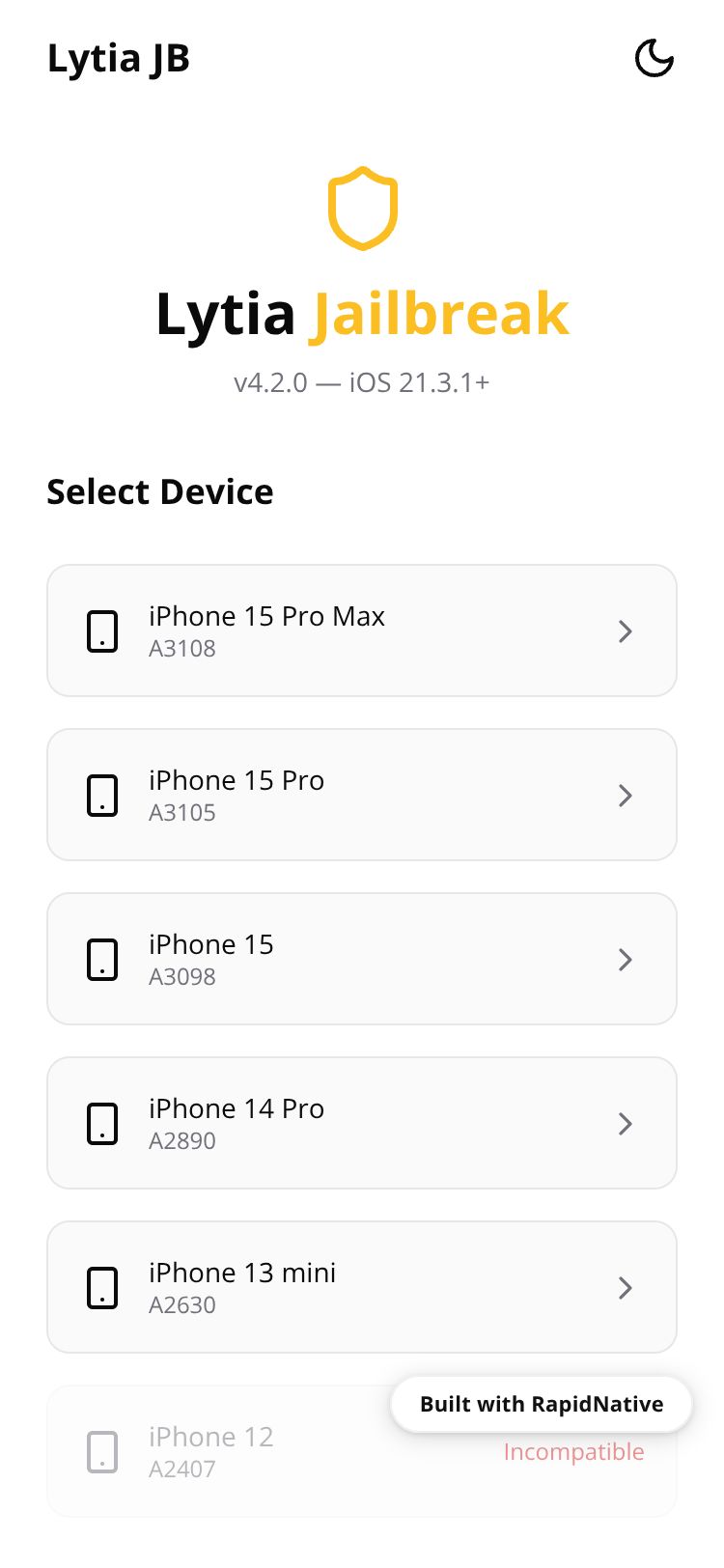 Browse this public project and clone it to start building your own React Native Lytia Jailbreak app.