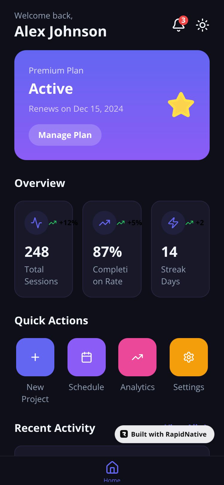 A modern mobile dashboard app with intuitive navigation, personalized insights, and seamless user experience for managing daily activities.