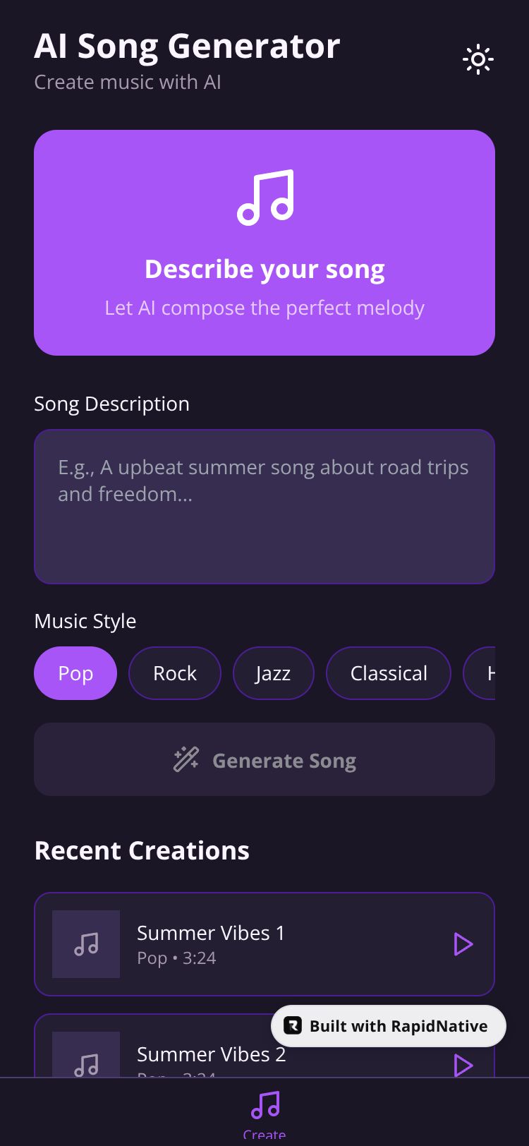 Browse this public project and clone it to start building your own React Native SongCraft AI app.