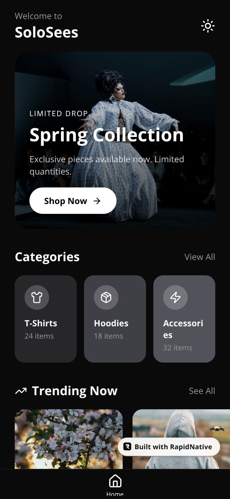 High-end minimalist streetwear app featuring exclusive drops, curated collections, and seamless shopping experience.