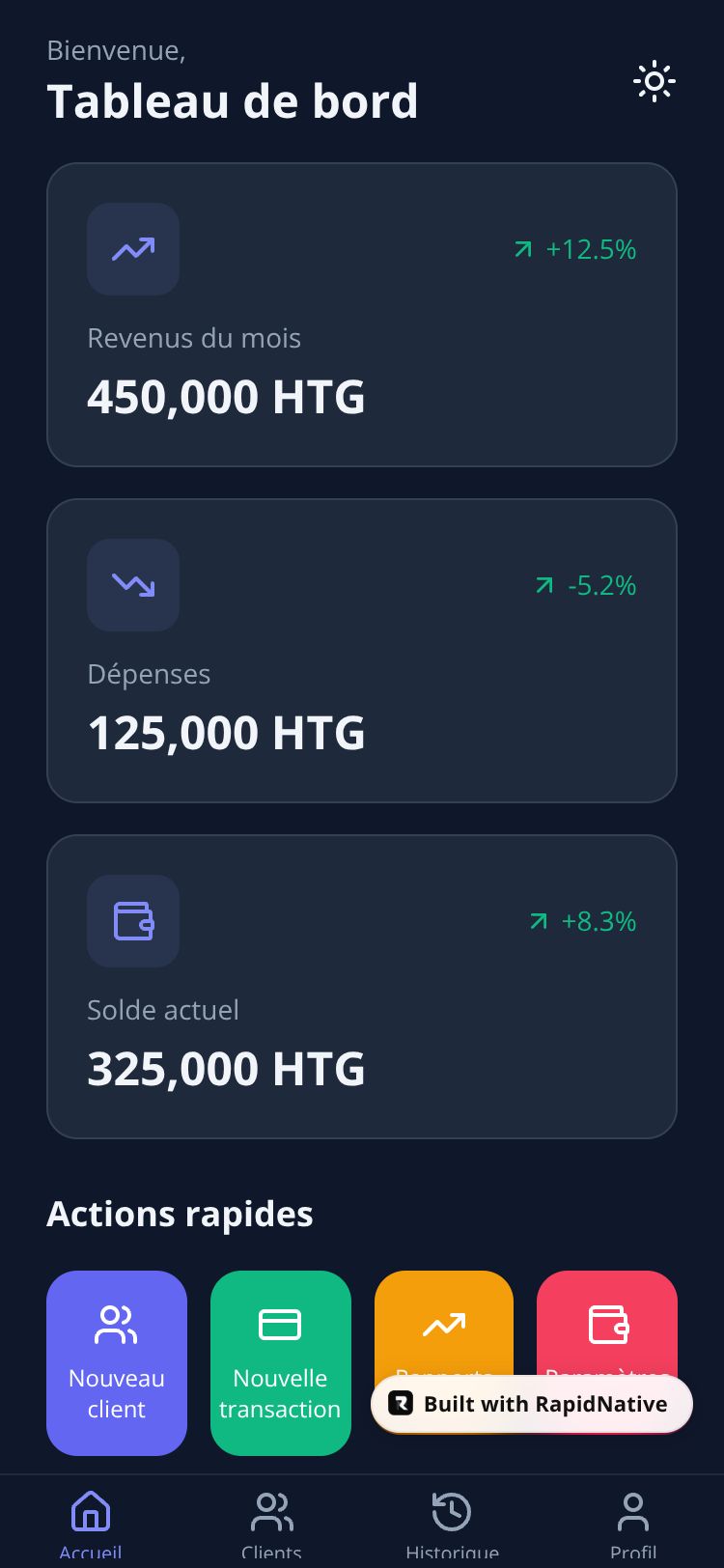Application de gestion d'argent pour clients avec suivi des dépôts, retraits et historique des transactions.