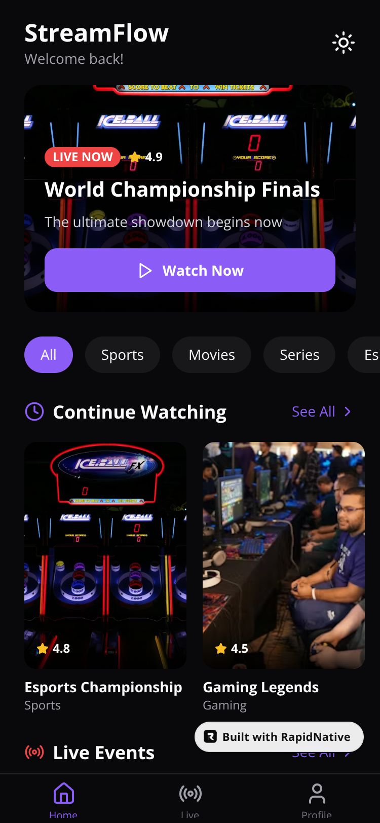 Browse this public project and clone it to start building your own React Native StreamFlow app.